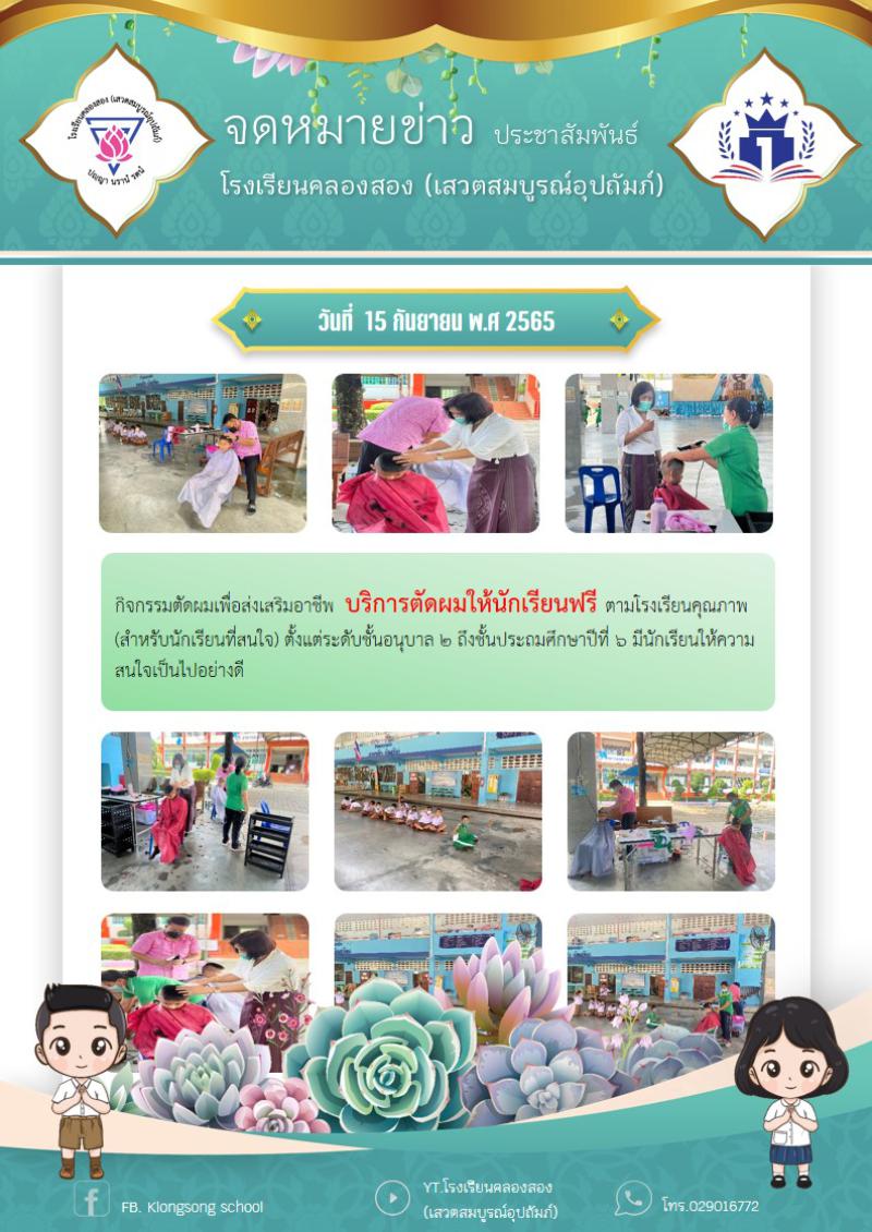 กิจกรรมตัดผมเพื่อส่งเสริมอาชีพ บริการตัดผมให้นักเรียนฟรี ตามโรงเรียนคุณภาพ (สำหรับนักเรียนที่สนใจ)