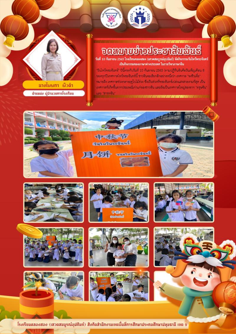 วันที่ 10 กันยายน 2565 โรงเรียนคลองสอง (เสวตสมบูรณ์อุปถัมภ์) จัดกิจกรรมวันไหว้พระจันทร์ เป็นกิจกรรมข..
