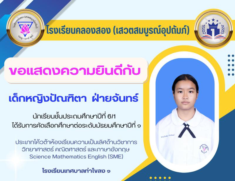 โรงเรียนคลองสอง (เสวตสมบูรณ์อุปถัมภ์) ขอแสดงความยินดีกับ เด็..