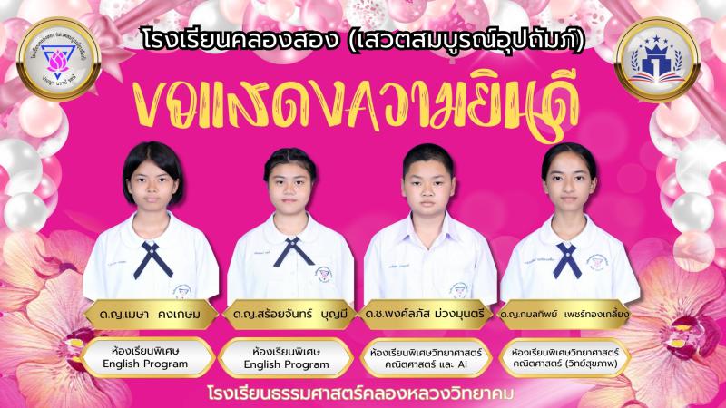 ​โรงเรียนคลองสอง (เสวตสมบูรณ์อุปถัมภ์) ขอแสดงความยินดี รายกา..