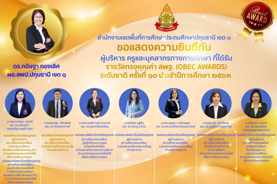 ขอแสดงความยินดีกับ นางไพผกา ผิวดำ ผู้อำนวยการโรงเรียน รองชนะเลิศระดับเหรียญทองผู้อำนวยการสถานศึกษายอ..