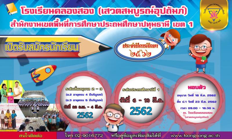 เปิดรับสมัครนักเรียน ชั้นอนุบาล 2-3 และชั้นประถมศึกษาปีที่ 1..