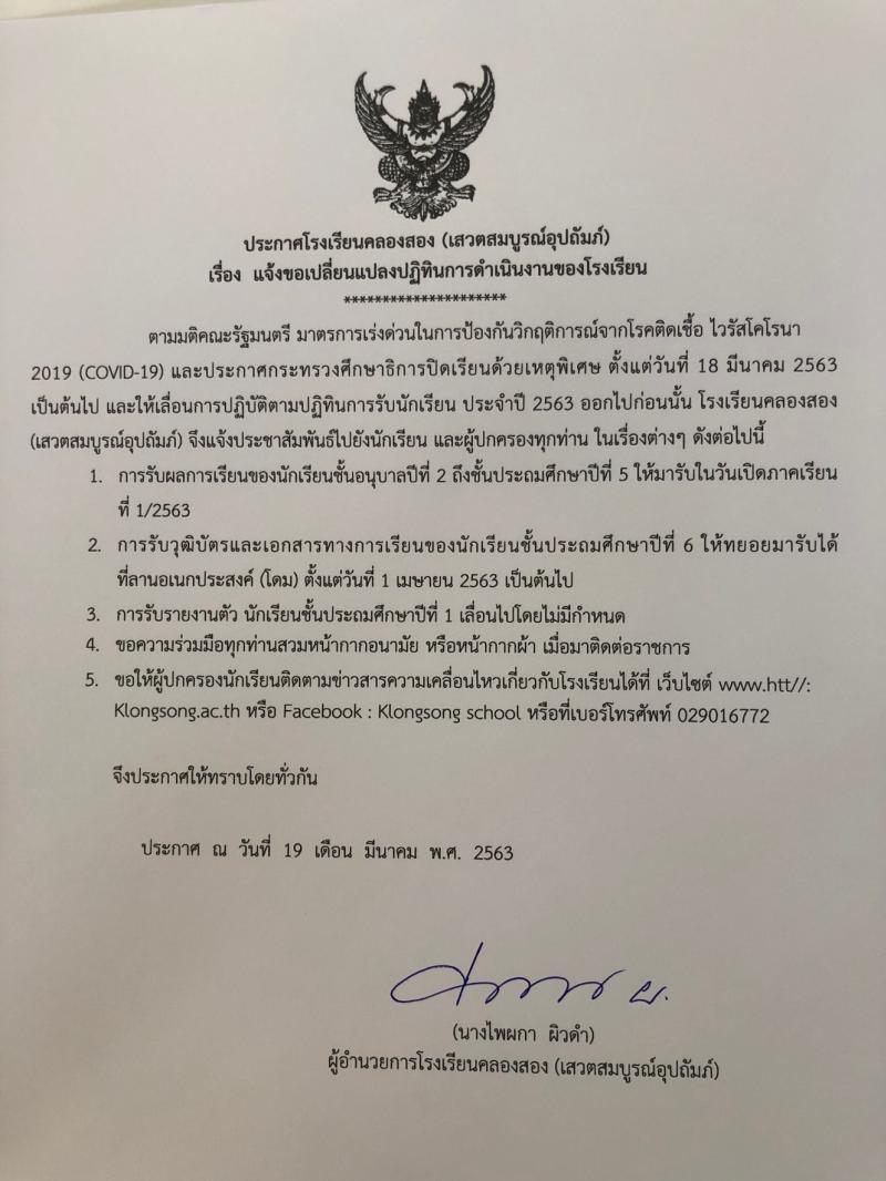 เลื่อนการรับรายงานตัวนักเรียนชั้น ป.1