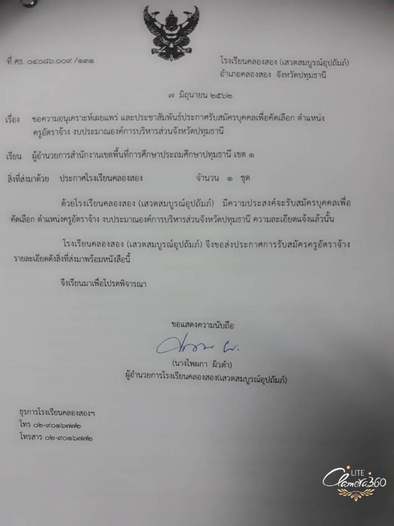 ประกาศรายชื่อผู้มีสิทธิ์สอบคัดเลือกครูอัตราจ้าง